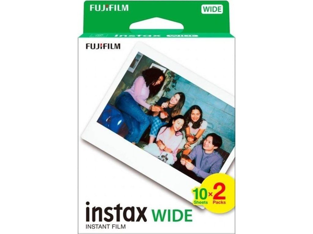 Film Instax WIDE obsahuje 20 snímkov a vkladá sa priamo do fotoaparátu Instax Wide. Rozmery 86 × 108 mm