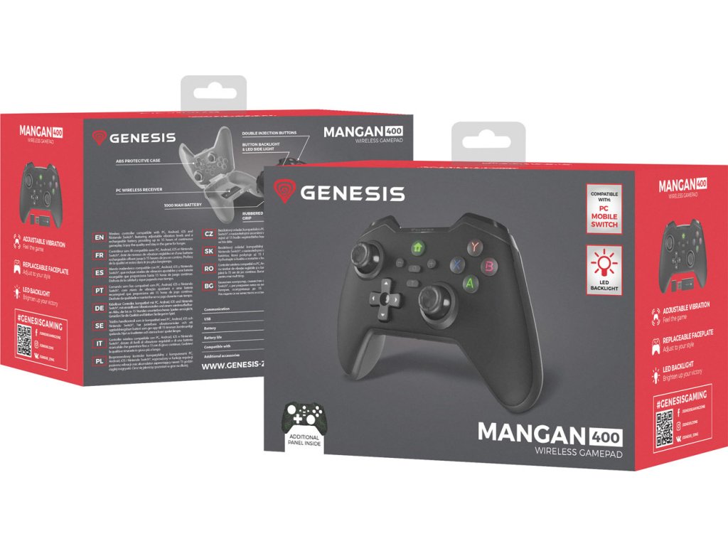 Objevte gamepad Genesis Mangan 400 a vyberte si profesionální a stylovou hru. Jedná se o bezdrátový ovladač, který byl navržen s důrazem na provozní přesnost a přizpůsobení vzhledu ovladače individuálnímu vkusu. Díky těmto řešením bude mnohem snazší dosáhnout následných vítězství a vyniknout mezi ostatními hráči.