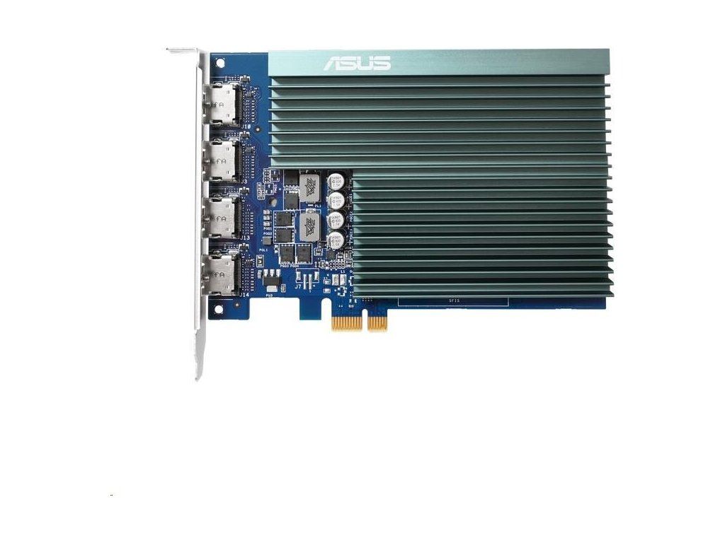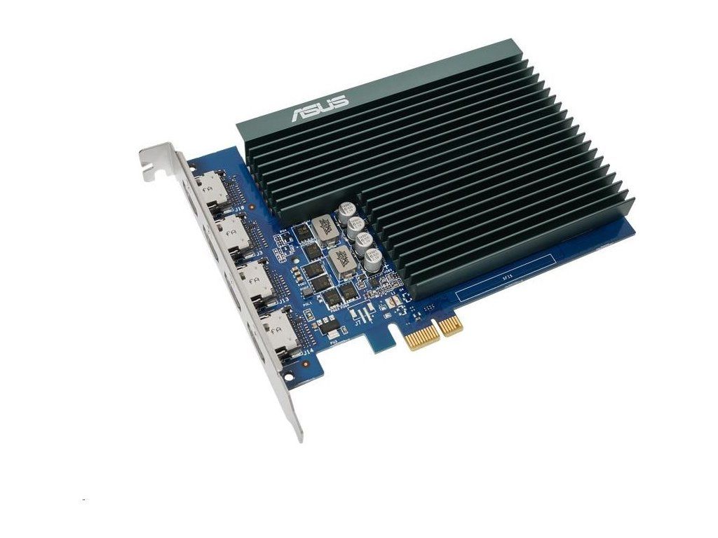 ASUS GeForce GT 730 so 4 portami HDMI a pasívnym chladením, ktoré umožňuje tichú prácu s viacerými monitormi.