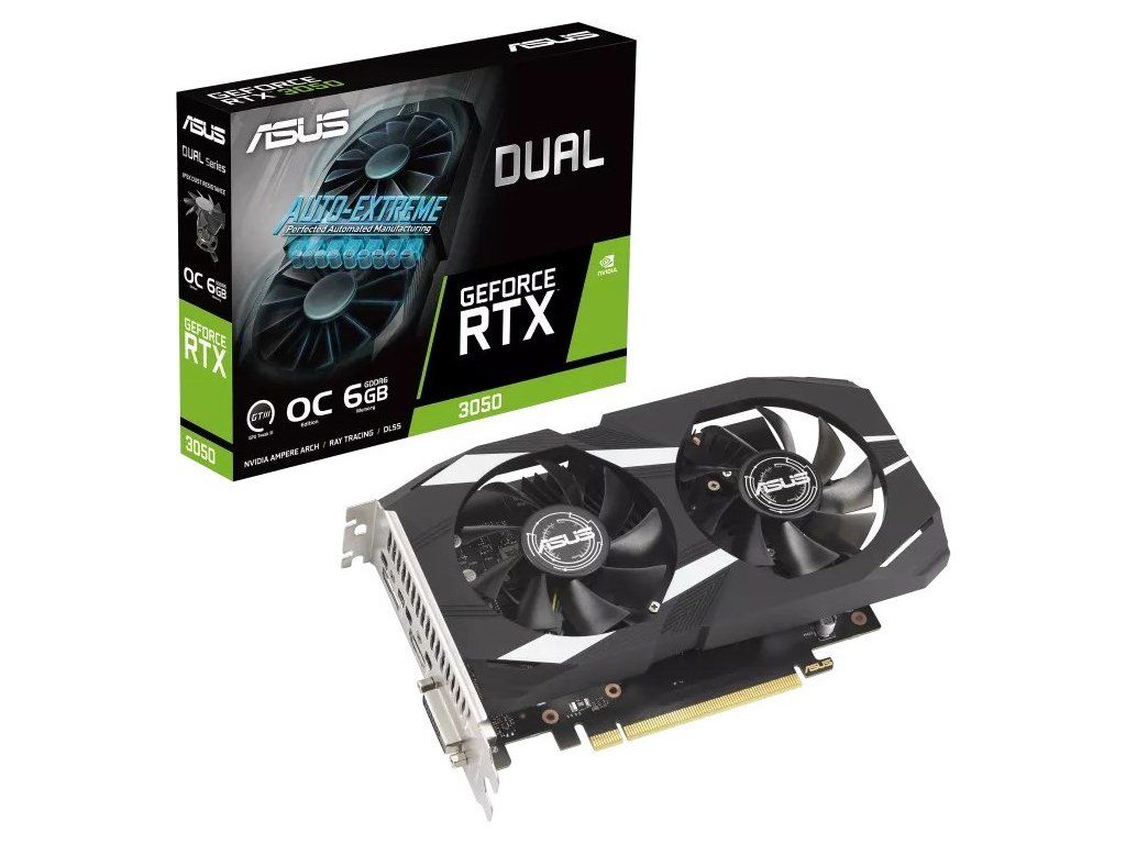 ASUS VGA NVIDIA GeForce RTX 3050 DUAL OC 6GB, RTX 3050, 6GB GDDR6, 1xDP, 1xHDMI, 1xDVI
