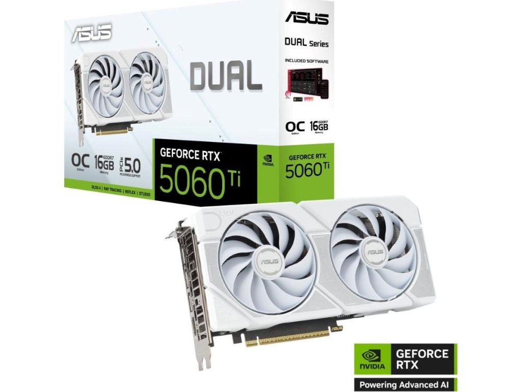 ASUS VGA NVIDIA GeForce RTX 5060 Ti DUAL OC 16G WHITE, 16GB GDDR7, 3xDP, 1xHDMI