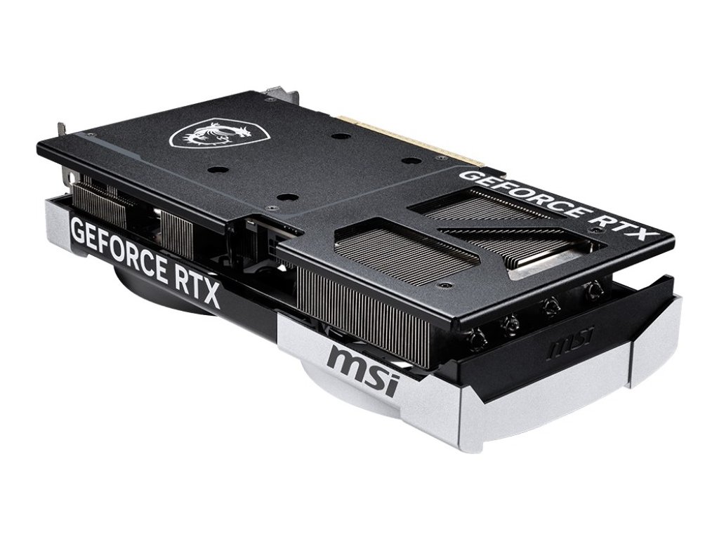- Kovová zadná doska: Odolná kovová zadná doska spevňuje grafickú kartu, zatiaľ čo konštrukcia s priechodmi pre prúdenie vzduchu znižuje nadbytočné teplo.