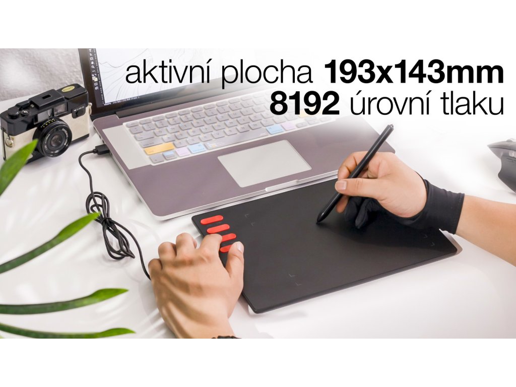 • 8 programovatelných kláves tabletu a 2 aktivní klávesy pera