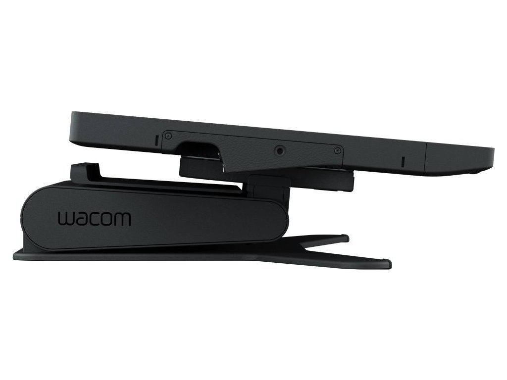 Stojan Wacom Cintiq Pro 27 podporuje naklánění, zvedání a otáčení; stojan se připevňuje pomocí standardního držáku VESA 100x100mm.