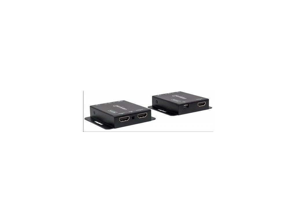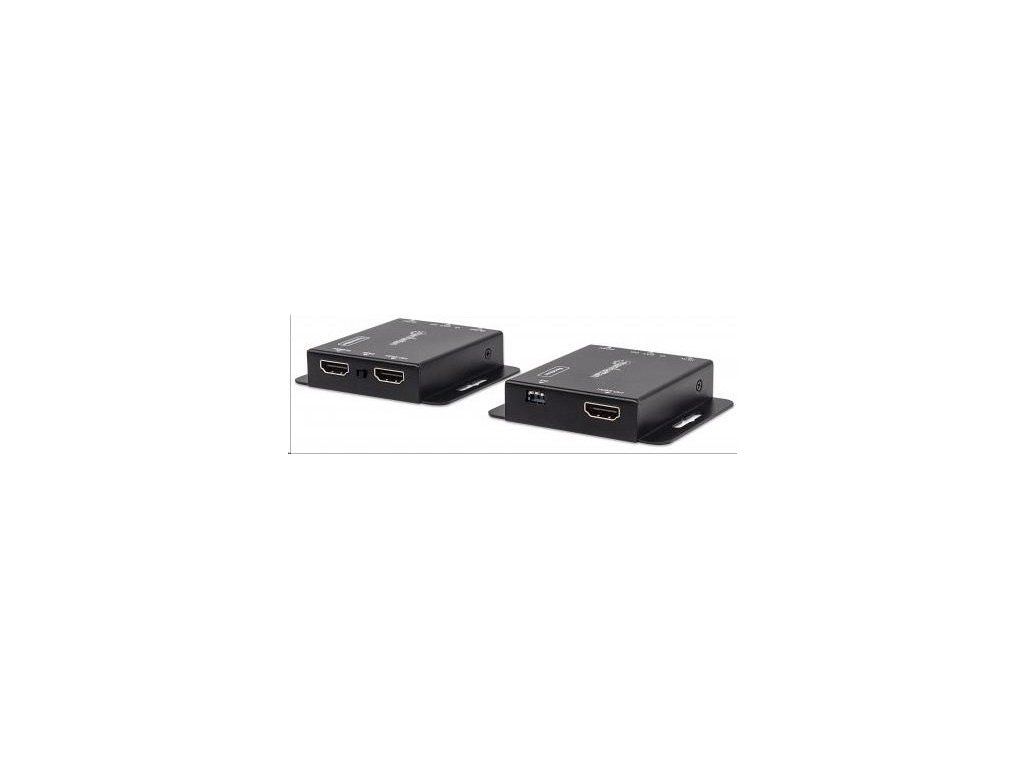 Súprava Manhattan 1080p HDMI over Ethernet Extender Kit je ideálnym riešením na pripojenie prakticky akéhokoľvek zdroja HDMI (PlayStation, Xbox, Blu-ray prehrávač, satelitný prijímač, digitálny rekordér atď.) k HD displeju alebo projektoru až do vzdialenosti 50 m (164 ft.) od zdroja prostredníctvom jedného ethernetového kábla Cat6. Tieto napájané extendery HDMI poskytujú spoľahlivý prenos videa s rozlíšením 1080p a viackanálového zvuku na väčšie vzdialenosti, ako je to možné len pomocou káblov HDMI. Modul vysielača má navyše ďalší výstupný port HDMI, ktorý umožňuje umiestnenie druhého monitora v riadiacej skrini alebo pripojenie druhého displeja. Na dodatočnú kontrolu kvality obsahuje súprava Manhattan 1080p HDMI over Ethernet Extender Kit prepínač EDID na minimalizáciu problémov so zobrazením, zabudovaný prepínač ekvalizéra na korekciu dlhodobého blikania obrazovky a širokopásmový IR blaster a prijímač na diaľkové ovládanie zdrojového zariadenia.