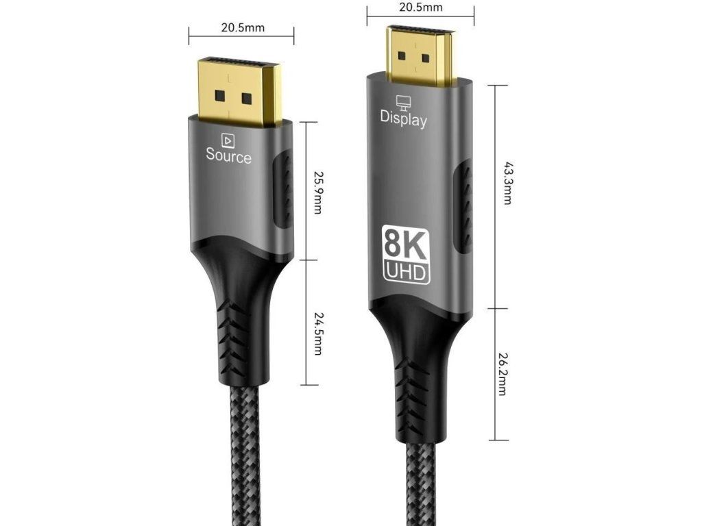 - 1 x DP 1.4 samec > 1 x HDMI-A 19kolíkový samec
