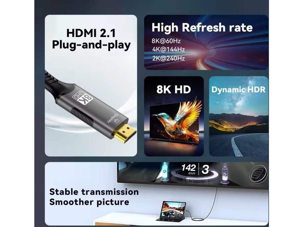 - Rozlíšenie videa je až 8K@60Hz,4K@144Hz, FULL HD 1080p