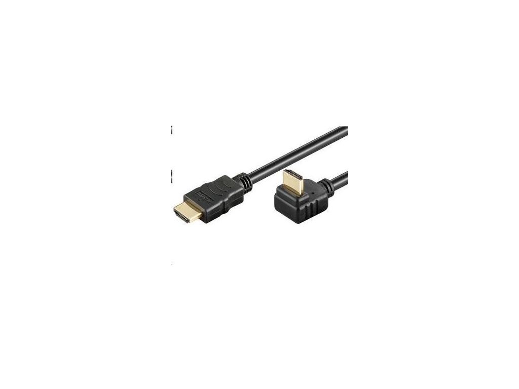PremiumCord HDMI High Speed+Ethernet kábel, pozlátený zahnutý konektor 270° 1m