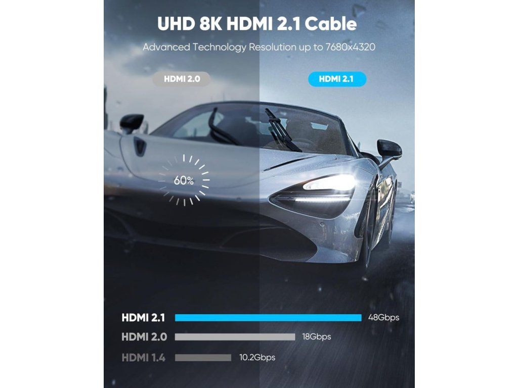 * HDMI 2.1 High Speed kabel + Ethernet kabel