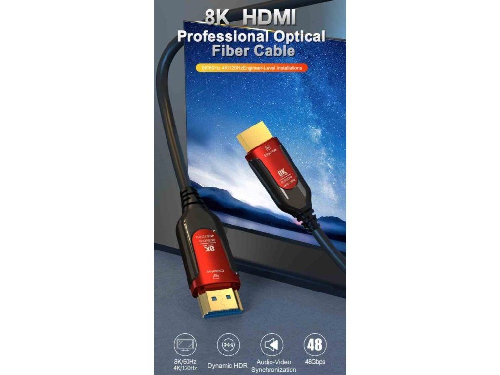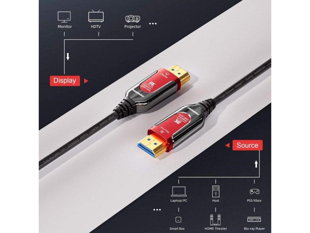 PREMIUMCORD Ultra High Speed HDMI 2.1 optický fiber kabel 8K@60Hz, zlacené 5m