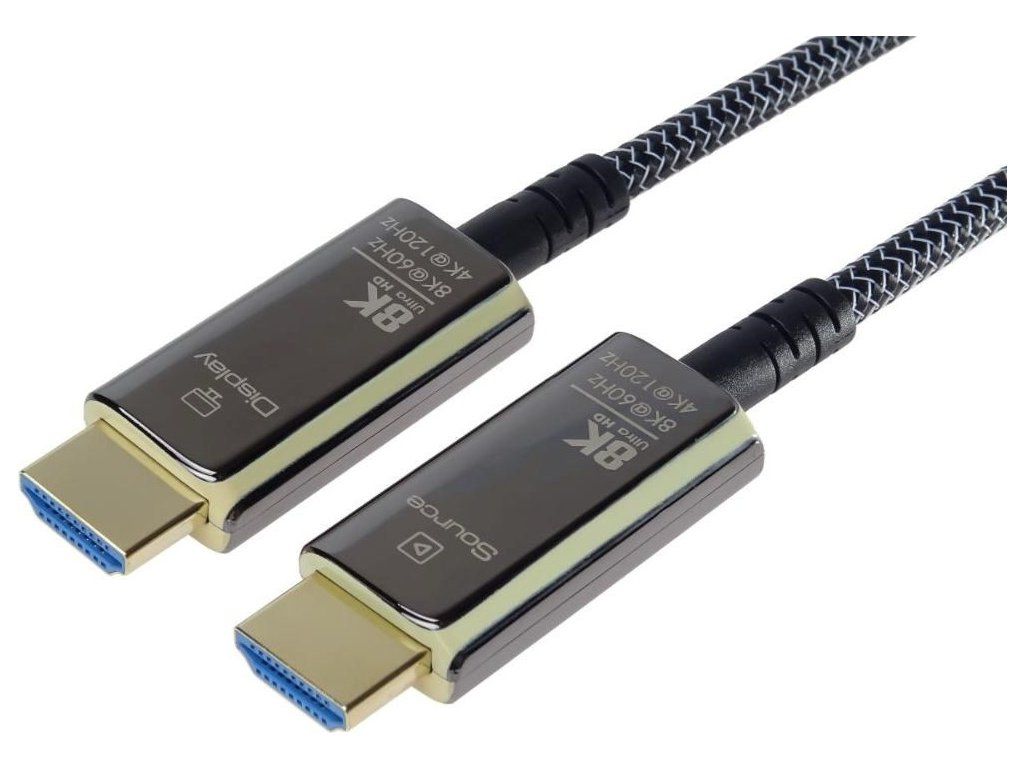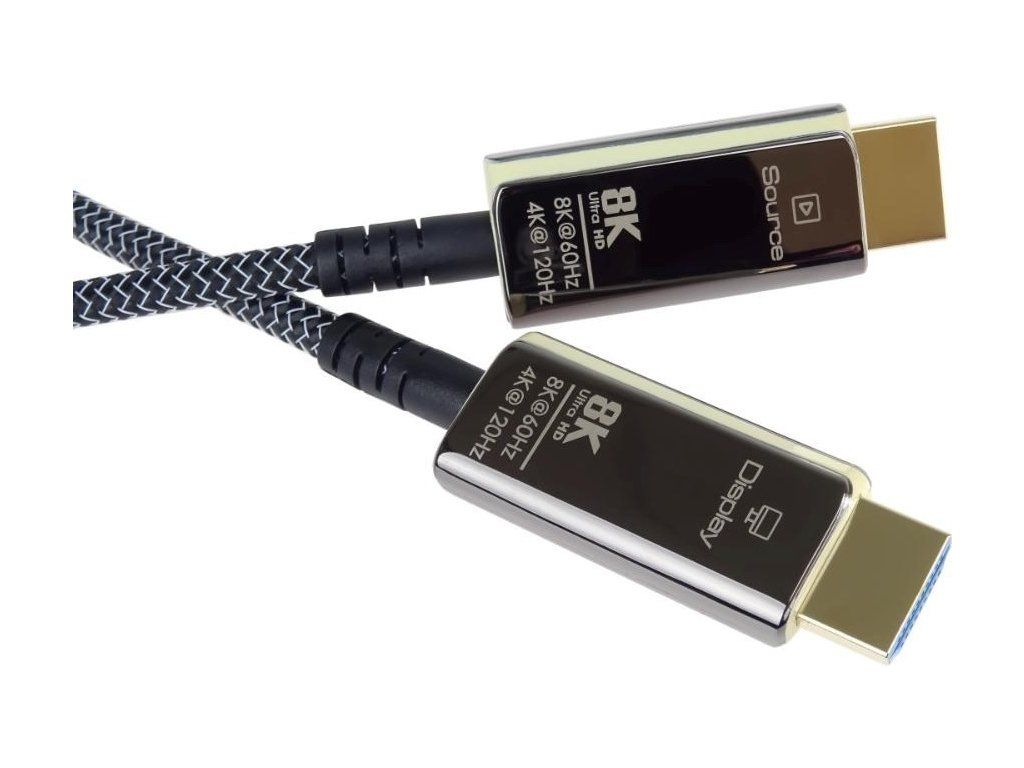 Optický HDMI 2.1 Ultra High Speed 8K@60Hz alebo 4K@120Hz kábel slúži na prepojenie dvoch audio/video zariadení cez moderné HDMI rozhranie, ako je napr. HD-DVD/BluRay prehrávač a LCD/Plazma televízor. Kábel prenáša digitálny zvuk aj obraz a podporuje digitálnu ochranu obsahu HDCP.