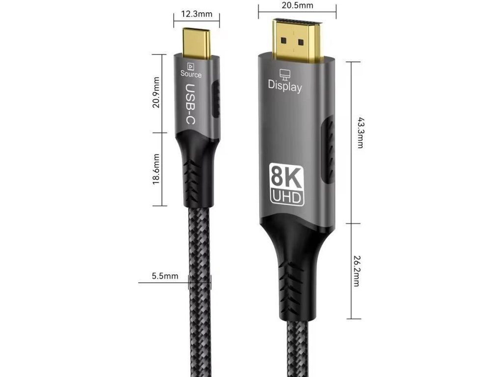PremiumCord USB-C na HDMI kábel 2m rozlíšenie obrazu 8K@60Hz,4K@144Hz Hliníkový