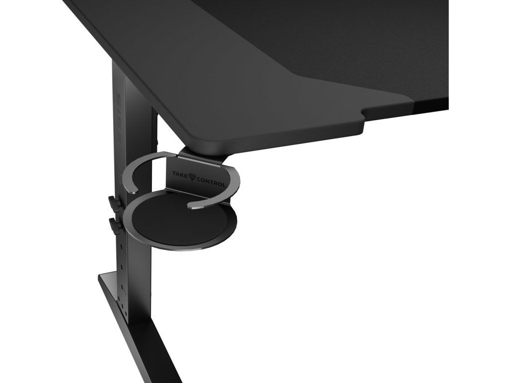 - Je vybaven skládacími držáky na šálky a sluchátka, které lze bez demontáže skrýt pod stůl.