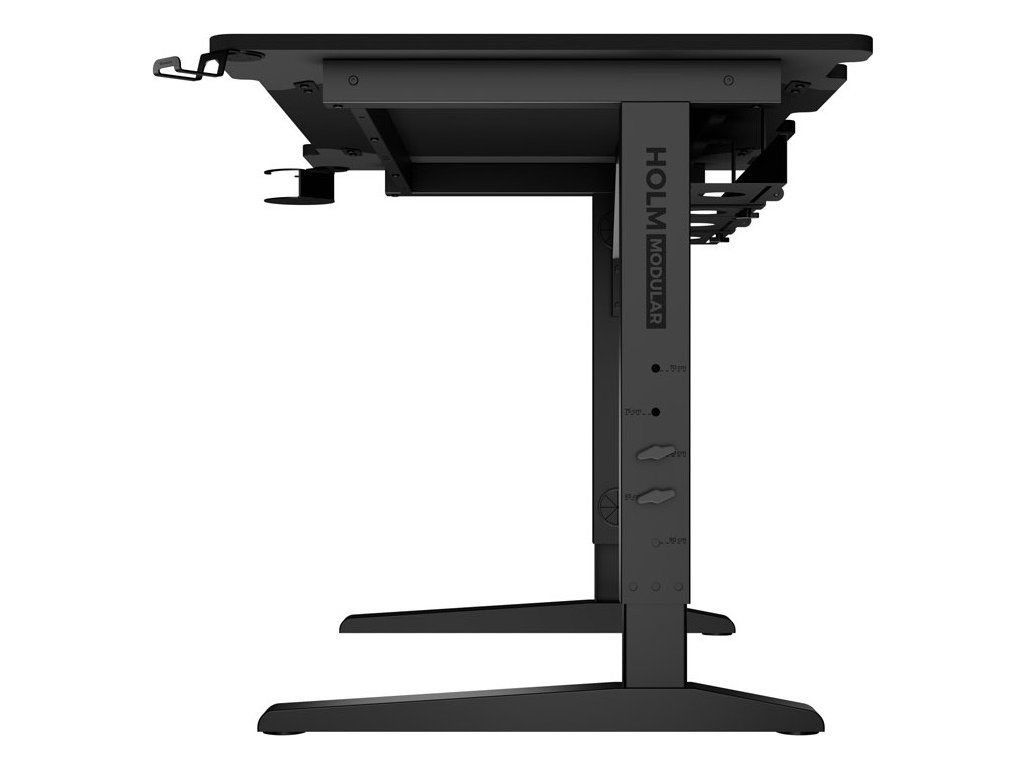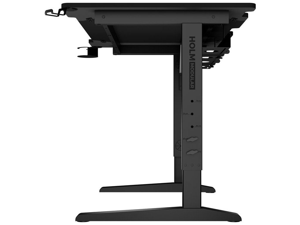 Nemusíte se obávat ani jeho výšky. Již ve fázi montáže si můžete vybrat z 5 úrovní, čímž určíte polohu stolové desky v rozmezí 70 až 90 cm. Můžete si ji tak snadno přizpůsobit své výšce, díky čemuž je stůl GENESIS Holm Modular plně ergonomický. Nastavitelná je také speciální police na kabely. Můžete ji prodloužit v rozmezí 50 až 95 cm, a přizpůsobit ji tak rozměrům celé stolové desky. Díky její hloubce se do ní snadno vejdou i velké přepěťové lišty.