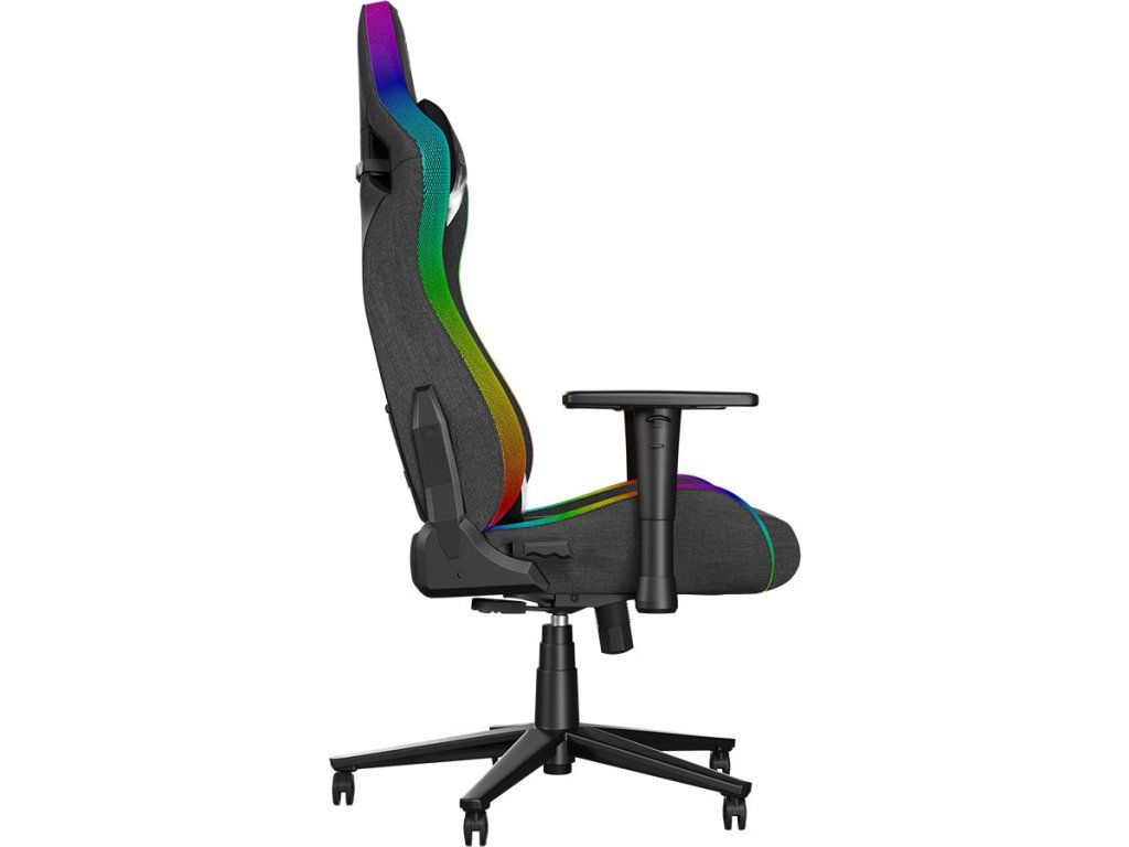 - Ergonomická herní židle s dálkově ovládaným RGB podsvícením s mnoha efekty a režimy umožňujícími nastavení rychlosti a jasu.