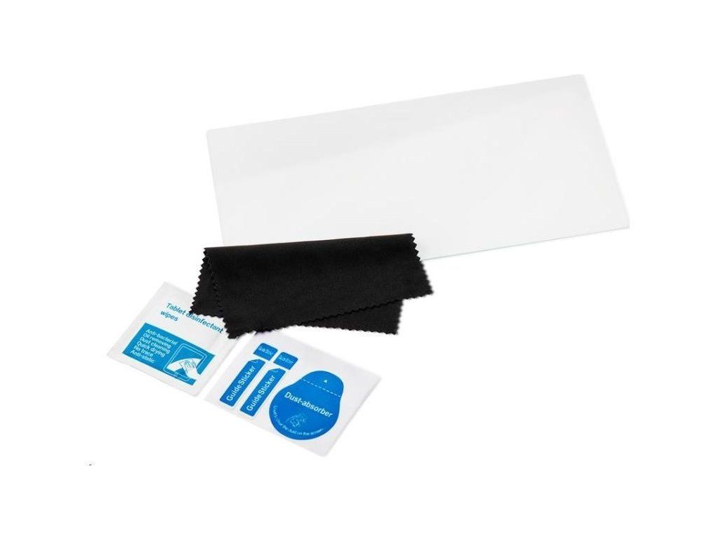 - Súčasťou balenia je čistiaca handrička, dva dezinfekčné vlhčené obrúsky, dve lepítka na odstránenie prachu a nálepky uľahčujúce aplikáciu skla.