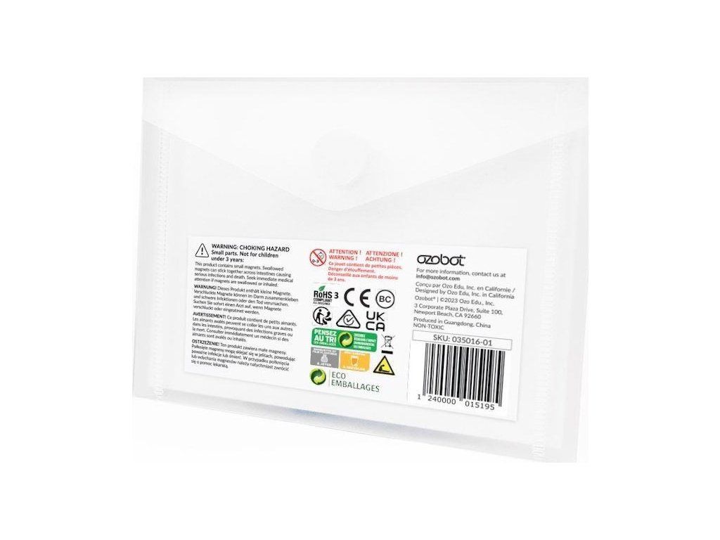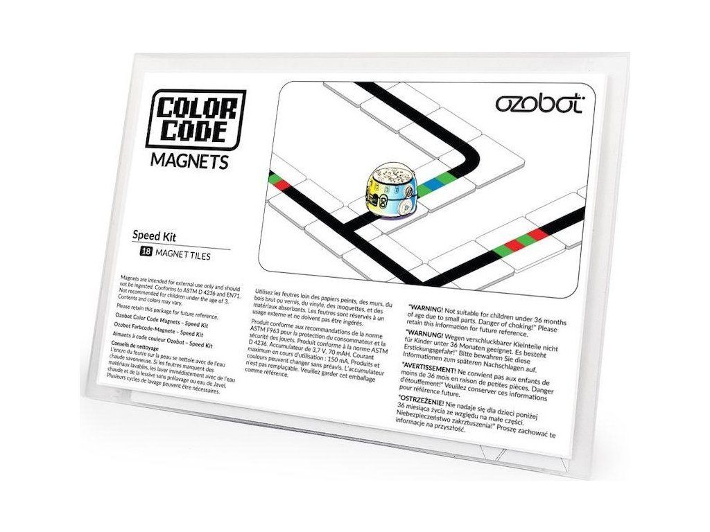 Rozširujúca magnetická sada Ozobot je kombináciou farebných kódov Ozobot a dielikov pre sledovanie trasy pomocou čiernej čiary. Umožňuje žiakom rozvíjať skúsenosti v širokom spektre zručností. Magnety s farebnými kódmi a čiarmi majú vhodnú veľkosť a ľahko sa používajú. Manipuluje sa s nimi jednoducho vďaka praktickým rozmerom a sú ideálne pre mladých žiakov, ktorí práve začínajú objavovať svet interaktívneho kódovania.Kvalita a dlhá životnosť