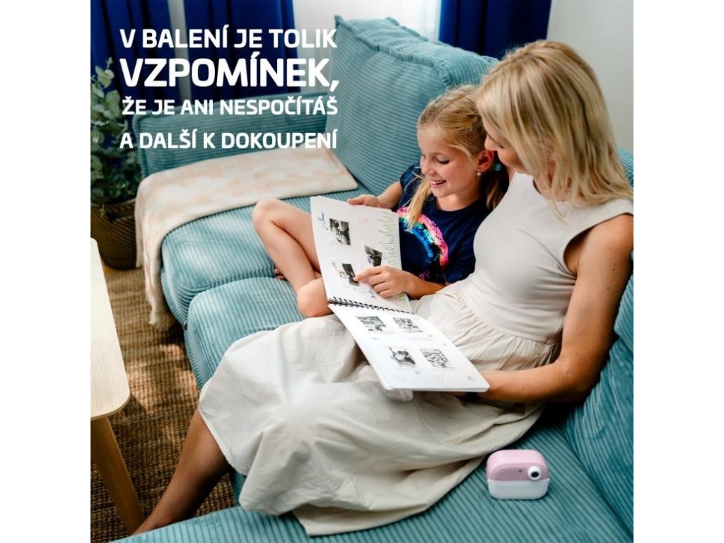 Súčasťou balenia je klasická termopapierová aj samolepiaca rulička, aby radosť z fotenia a tvorenia mohla začať hneď.