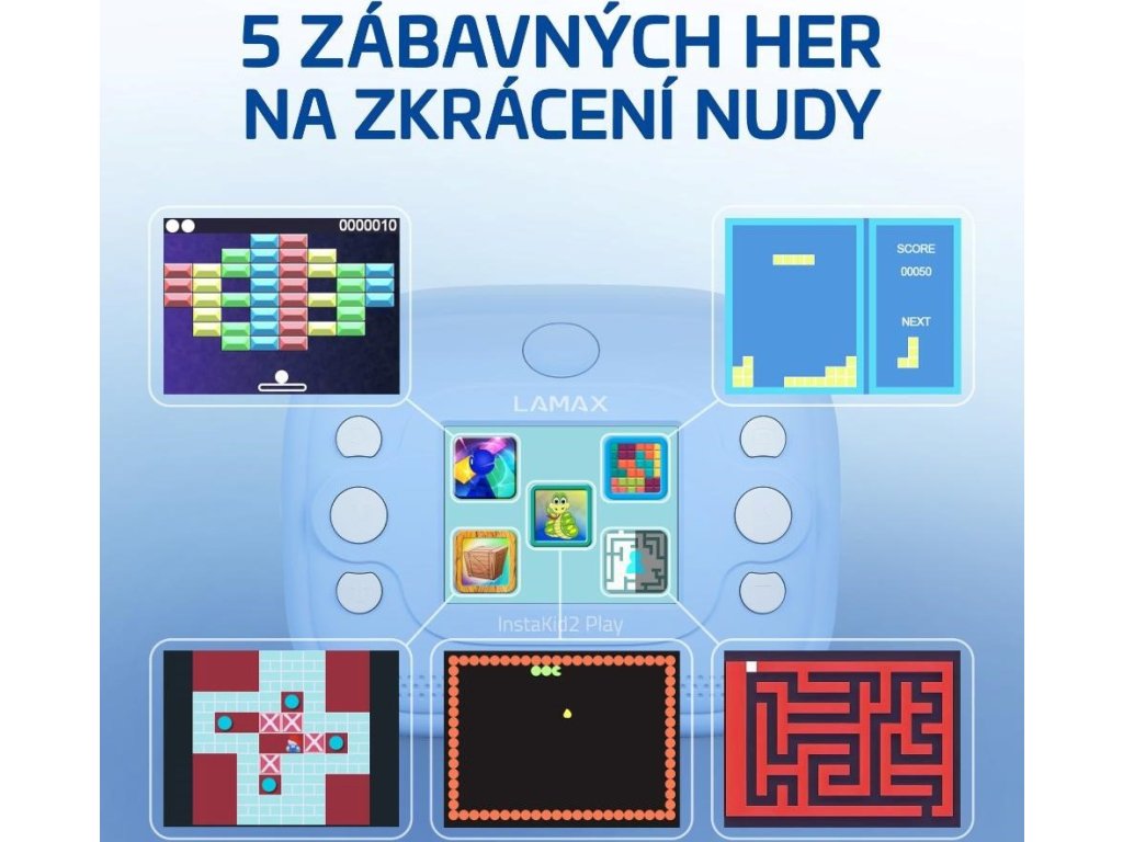 Keď si deti budú chcieť od fotenia oddýchnuť, môžu si zahrať jednu z piatich hier priamo vo svojom fotoaparáte.
