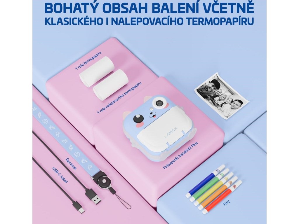 Objavte čaro zachytených okamihov, ktoré si vaše deti vytlačia počas pár sekúnd. Detský fotoaparát LAMAX InstaKid2 Plus s okamžitým tlačom nie je len roztomilý na pohľad. S českou aplikáciou, vysokým rozlíšením fotiek aj videa a sadou kreatívnych nástrojov sa stáva zábavným parťákom na výlety aj do izbičky. Deti si s ním nielen vyfotí svoje zážitky, ale ihneď si ich aj vytlačia, vyfarbia priloženými fixkami a lepia do denníka alebo kamkoľvek budú chcieť. Pomocou aplikácie zvládnu tlačiť fotky a poznámky z telefónu, skenovať texty zošitov, preklápovať snímky do animovaného štýlu alebo si s pomocou AI vyfarbiť čiernobiele obrázky. A keď si od fotenia chcú na chvíľu oddýchnuť? O zábavu sa postarajú aj vestavené hry.LAMAX InstaKid2 Plus fotoaparát podporuje kreativitu, samostatnosť aj hravé učenie a kto vie, možno práve tento foťák odštartuje kariéru vášho dieťaťa vo svete fotografie a filmu.