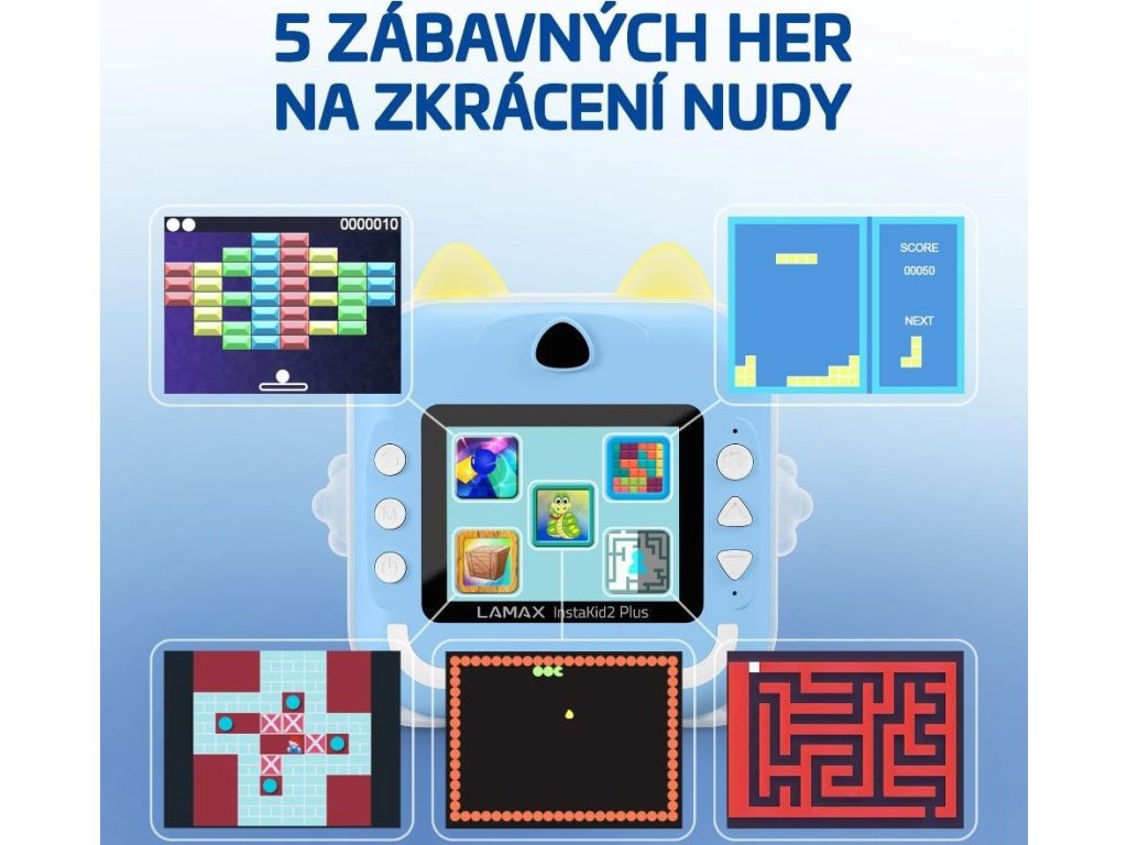S LAMAX detským foťákom si deti vytvoria spomienku počas pár sekúnd – stačí stlačiť spúšť a čiernobiela fotka je na svete. V balení je aj samolepiaca rolka, takže si obrázok rovno nalepia do denníka, na stenu alebo napríklad babičke na chladničku. Vďaka priloženým fixkám si navyše každú fotku môžu vyfarbiť podľa seba. A keď sa práve nefotí? O zábavu sa postará päť vestavených hier, ideálnych napríklad na cesty.