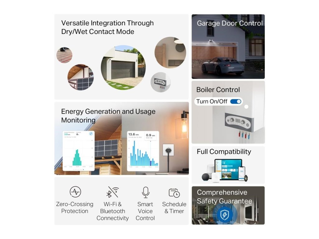- Ovládanie garážových dverí: Upgradujte svoje garážové dvere na chytré hlasové ovládanie, diaľkové ovládanie a plynulú automatizáciu s možnosťou nastavenia jedinečného PIN kódu.