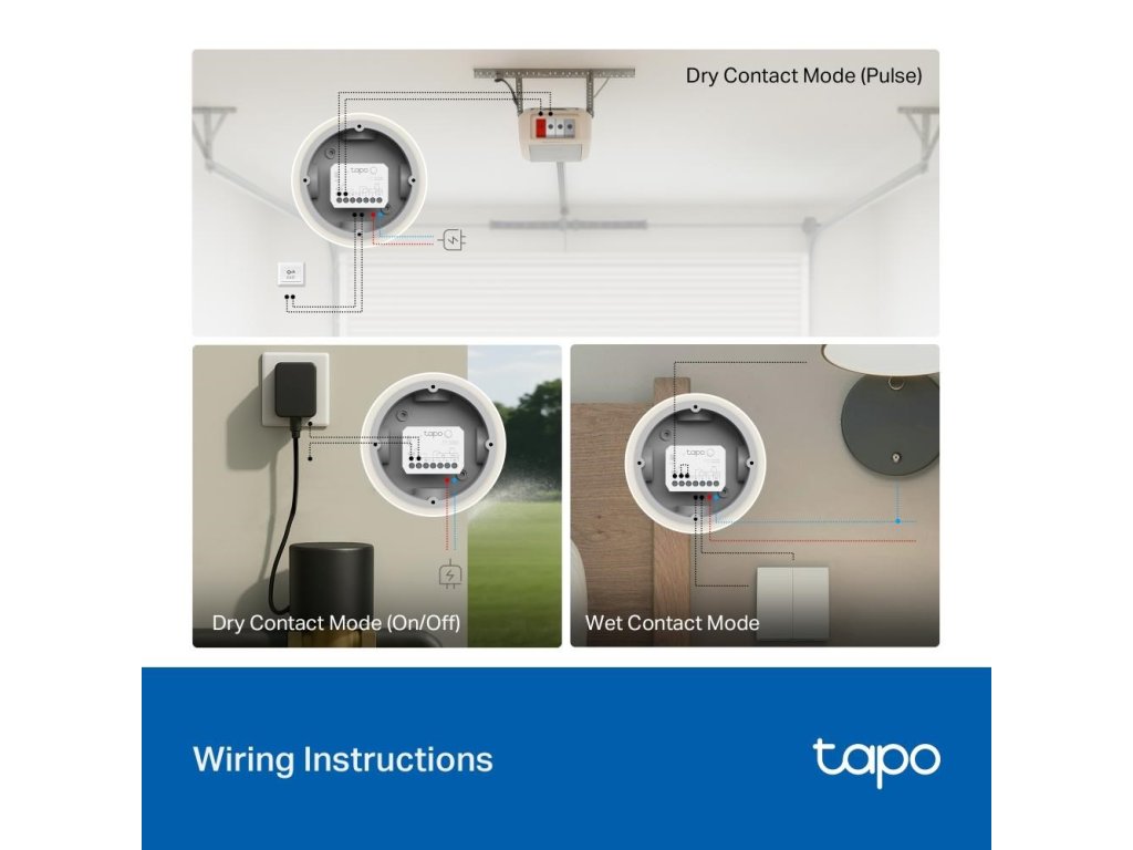 - Režim s potenciálovým kontaktom: Umožňuje jednoduché ovládanie chytrého osvetlenia, zásuviek a elektrického podlahového vykurovania bez nutnosti výmeny súčasného vybavenia.