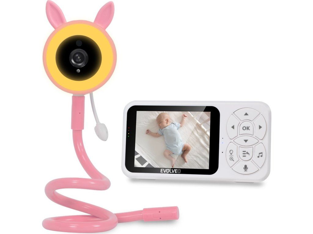 EVOLVEO Baby Monitor N35 – dětská chůvička s kamerou, VOX, teploměr, noční vidění, RGB světlo, Růžová