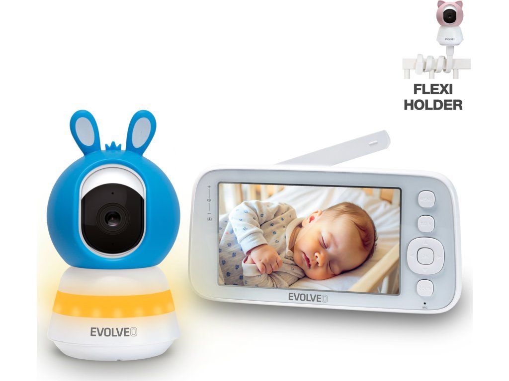 EVOLVEO Baby Monitor N5, Set videochůvičky s 360° dohledem, obousměrnou komunikací a ukolébavkami, modrá