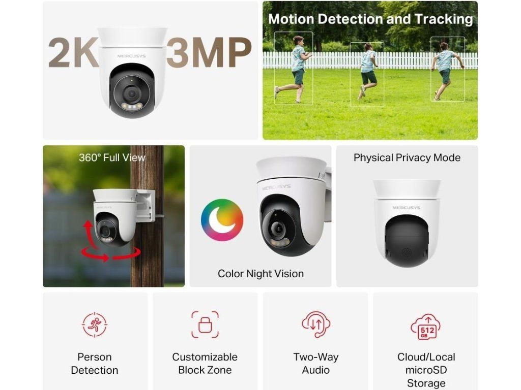 MERCUSYS MC510 venkovní-outdoor kamera (3MP, 2K, 1296p, IR 30m, WiFi, microSD)
