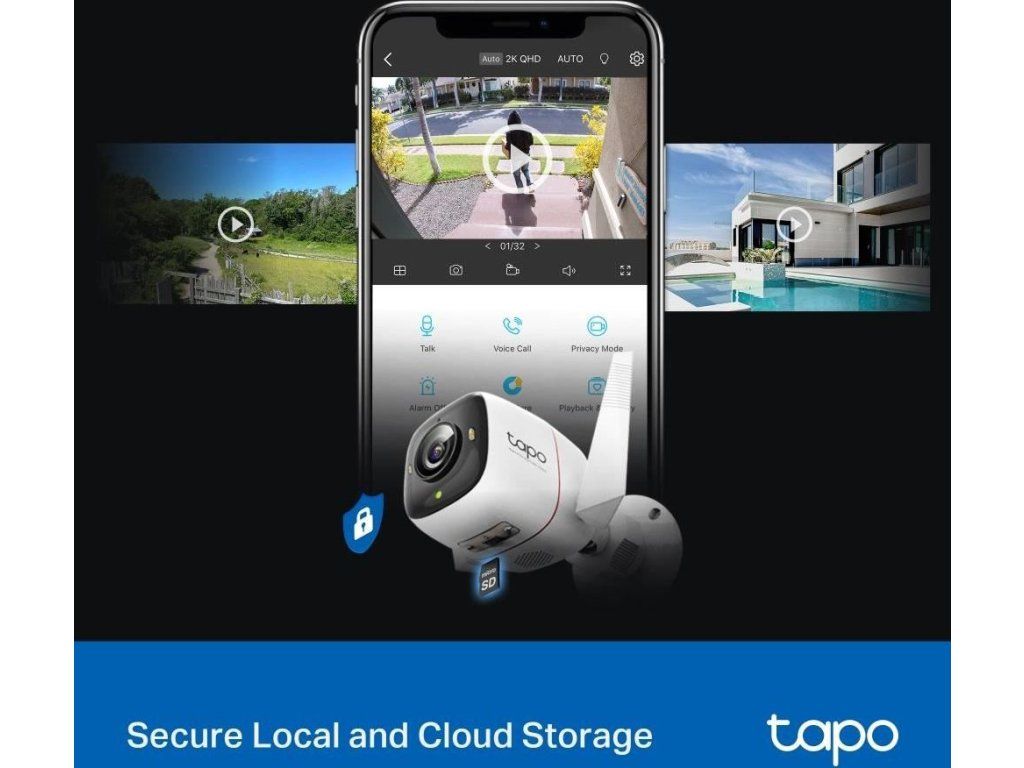 - Flexibilné možnosti úložiska – Ukladajte zaznamenané videá na nainštalovanú kartu microSD (až 512 GB) alebo použite cloudovú službu Tapo Care.