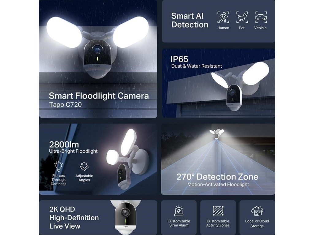 TP-Link Tapo C720 venkovní kamera s reflektory (4MP, 2K QHD, 1440p, IR 30m, WiFi, microSDcard, IP65)