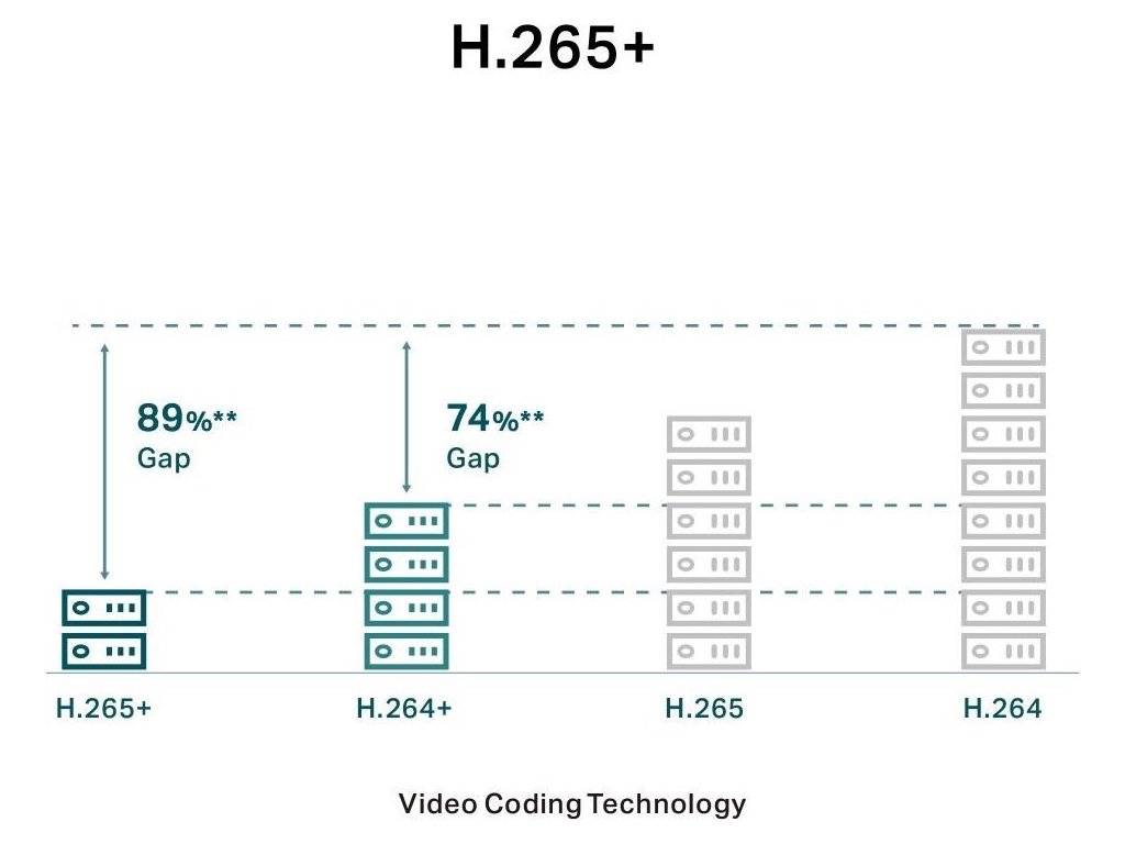 - H.265+: Kamery prenášajú komprimovaný krištáľovo čistý obraz, bez využitia ďalšej šírky pásma, čím šetria miesto na disku, znižujú zaťaženie siete a náklady na monitorovanie – to všetko bez zníženia kvality obrazu.