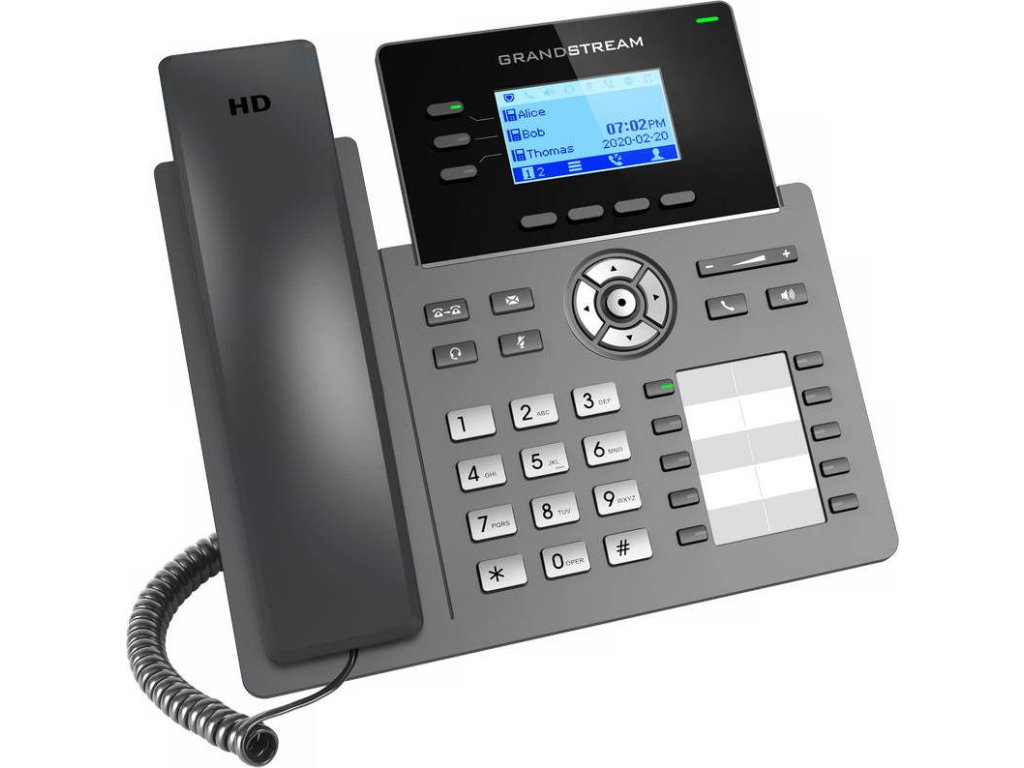 Součástí nové Grandstream GRP řady IP telefonů je i GRP2604P. Jde o základní třílinkový model navržený pro hromadné nasazení a snadný management. Vyznačuje se elegantním designem a sadou funkcí nové generace, včetně 5 cestné audiokonference pro maximální produktivitu, integrovaného PoE napájení, HD audio v reproduktoru i sluchátku umožňuje uživatelům komunikovat v maximální srozumitelnosti a kvalitě, 10 BLF tlačítek pro rychlé volby, podporou EHS pro náhlavní soupravy Plantronics, Jabra a Sennheiser , vícejazyčnou lokalizaci včetně české a slovenské.