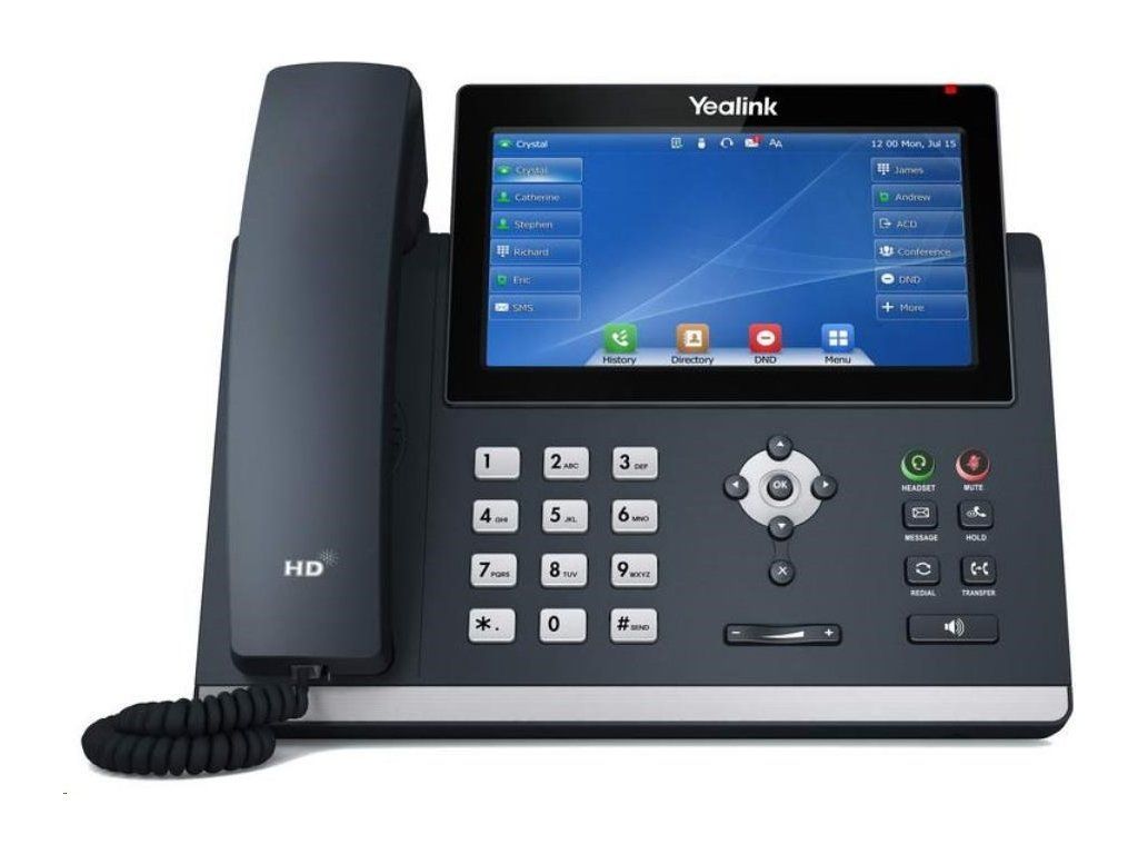 Yealik T43U je vybavený 7" farebnou dotykovou obrazovkou s rozlíšením 800 x 480 pixelov. Atraktívny čistý dizajn s kovovou tyčou sa hodí do každej modernej kancelárie. Zariadenie Yealink SIP-T48U má 16 účtov SIP a dva porty 1 Gbs Ethernet s podporou PoE. Ponúka 29 programovateľných dotykových tlačidiel DSS, ktorým možno priradiť mnoho rôznych funkcií. Telefón má tiež farebnú indikáciu a farebne podsvietené tlačidlá (hlasitý odposluch, slúchadlo, stlmený mikrofón). Podporuje tiež až trojcestné skupinové konferencie a vďaka podpore EHS k nemu môžete ľahko pripojiť bezdrôtové náhlavné súpravy.