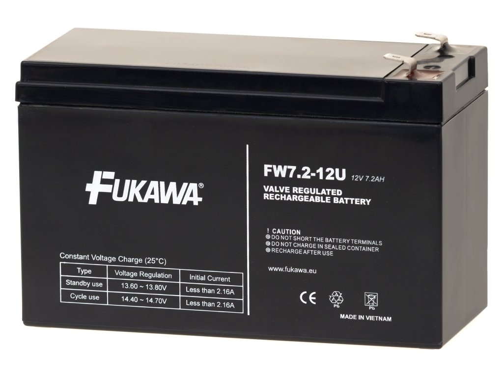 FUKAWA FW 7,2-12 je hermeticky uzavřený, záložní, bezúdržbový olověný akumulátor určený pro záložní zdroje UPS a jiné elektronické systémy. Baterie FUKAWA mají vysokou kvalitou zpracování, jsou velmi spolehlivé a jsou nejlepší variantu v poměru cena/výkon. Díky jejich unikátní konstrukci je lze provozovat v libovolné poloze a nevyžadují žádnou údržbu.
