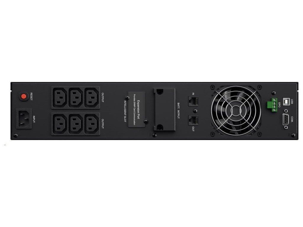 | Dodávka zahŕňa | UPS, Používateľská príručka, Rackmount koľajnice, Úchyty na montáž do stojana, Telefónny kábel, Kábel USB, Sériový kábel (RS232), M5X8L (8), M5X12L (12), Plastové podložky (8) Zaslepovacia doska (12), CD so softvérom PowerPanel Business Edition. Gumové podložky pre UPS(12) |
