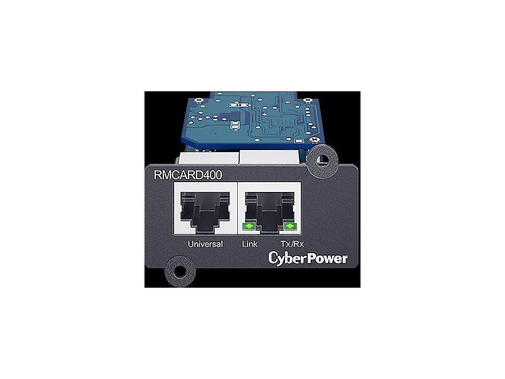CyberPower RMCARD400 je voliteľným doplnkom pre správu konkrétnej UPS rady CyberPower. Vložením karty do sieťového slotu SNMP / HTTP na UPS môžu používatelia vzdialene monitorovať a riadiť zariadenie v kancelárii, serverovni alebo dátovom centre prostredníctvom štandardných webových prehliadačov, systému správy siete (NMS) alebo rozhrania príkazového riadka (SSH a Telnet) v ich sieti. Môžu tiež vykonávať vzdialenú správu vrátane naplánovaného vypnutia, zapnutia a reštartu. Keď dôjde k problémom s napájaním, správca bude okamžite informovaný prostredníctvom e-mailu, SNMP a SMS správ. Použitím softvéru na automatické vypínanie zostávajú servery a pracovné stanice chránené pred stratou dát v dôsledku výpadku napájania. Záznam udalostí sleduje prevádzkovú históriu UPS. Vďaka možnosti výmeny batérií za prevádzky môže systém zostať zapnutý, aj keď servisný personál vykonáva údržbu alebo výmenu na mieste. Pomocou viacjazyčného rozhrania môžu používatelia zvoliť svoj preferovaný jazyk pre jednoduchú správu.