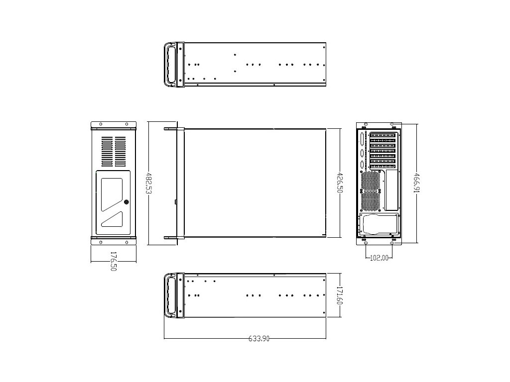 *case včetně úchytů 178 x 488 x 635 mm (V x Š x H)