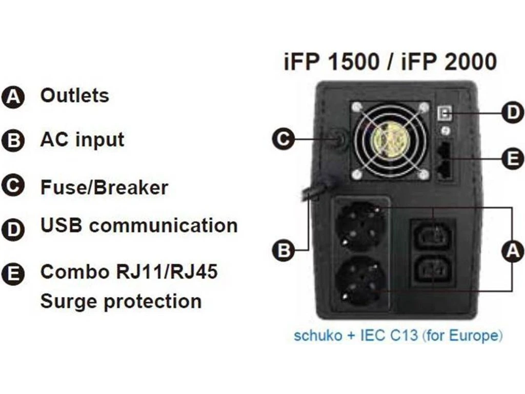Typ výstupnej zásuvky: 2 x zásuvka Schuko + IEC C13