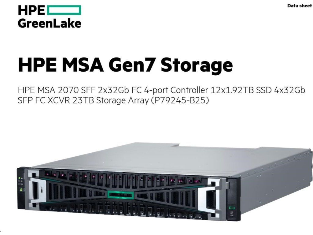 HPE MSA 2070 SFF 2x32Gb FC 4-port Controller 12x1.92TB SSD 4x32Gb SFP FC XCVR 23TB Storage Array