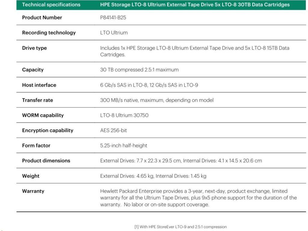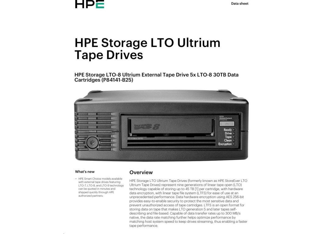 HPE Storage LTO-8 Ultrium External Tape Drive 5x LTO-8 30TB Data Cartridges