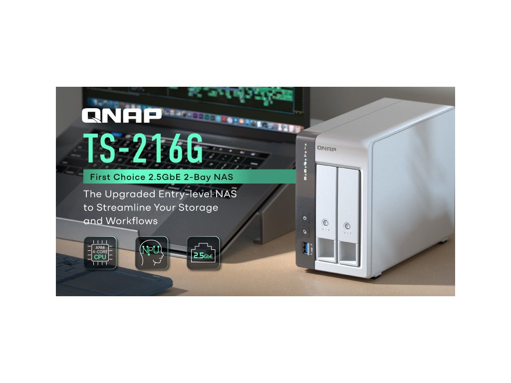Dvoupozicový 2,5GbE NAS TS-216G je navrhnutý pre domácich používateľov a malé kancelárie a dosahuje vysoký výkon a inteligentnú správu ako efektívne a spoľahlivé úložisko súborov. Môžete nielen ľahko pristupovať k súborom, zdieľať ich a synchronizovať s viac zariadeniami, ale aj spúšťať nástroje na zvýšenie produktivity a multimediálne aplikácie, ktoré zefektívnia vaše pracovné postupy a správu dát.