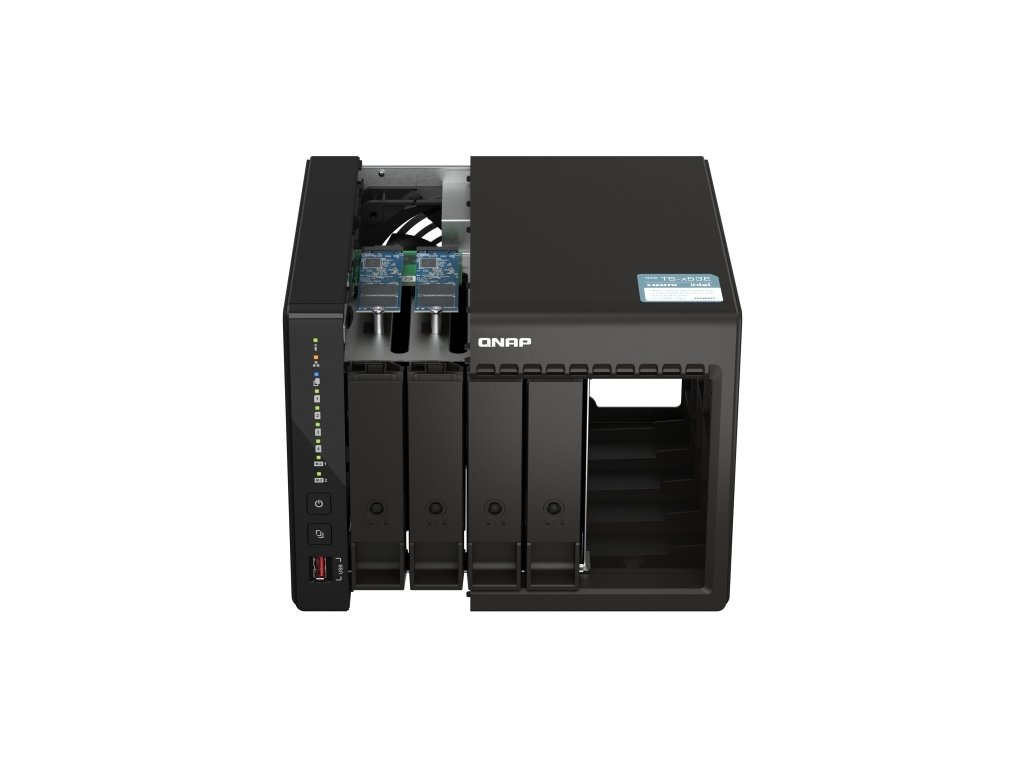 Zarízení TS-453E je vybavené pripojením 2,5GbE, 8 GB RAM a slotmi M.2 pre NVMe SSD cache – zabezpečuje vysoký výkon pre aplikácie, ako sú dohľadové systémy, virtuálne počítače, súborové servery alebo zálohovacie servery. Dva výstupy HDMI™ umožňujú aj priame prehrávanie multimédií a robustné sledovanie na dohľad. Spoločnosť QNAP bude poskytovať dlhodobú dostupnosť a podporu pre zariadenie TS-453E, čo je skvelá voľba pre podniky, ktoré potrebujú vhodné modely NAS nasadené na viacerých miestach.