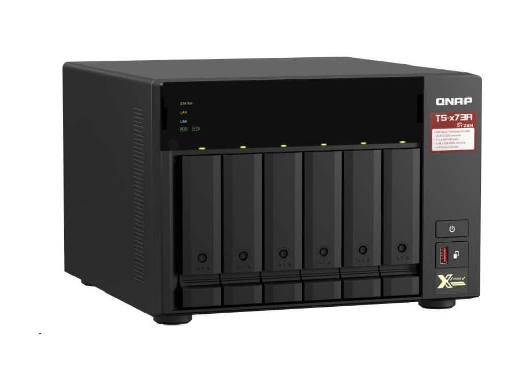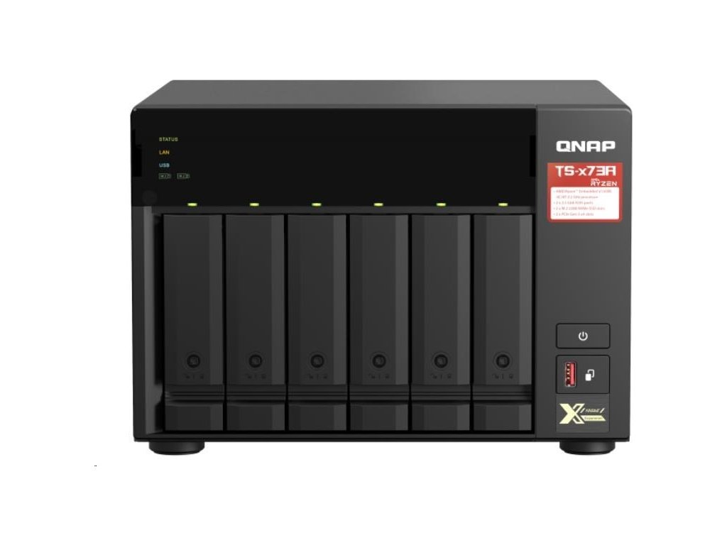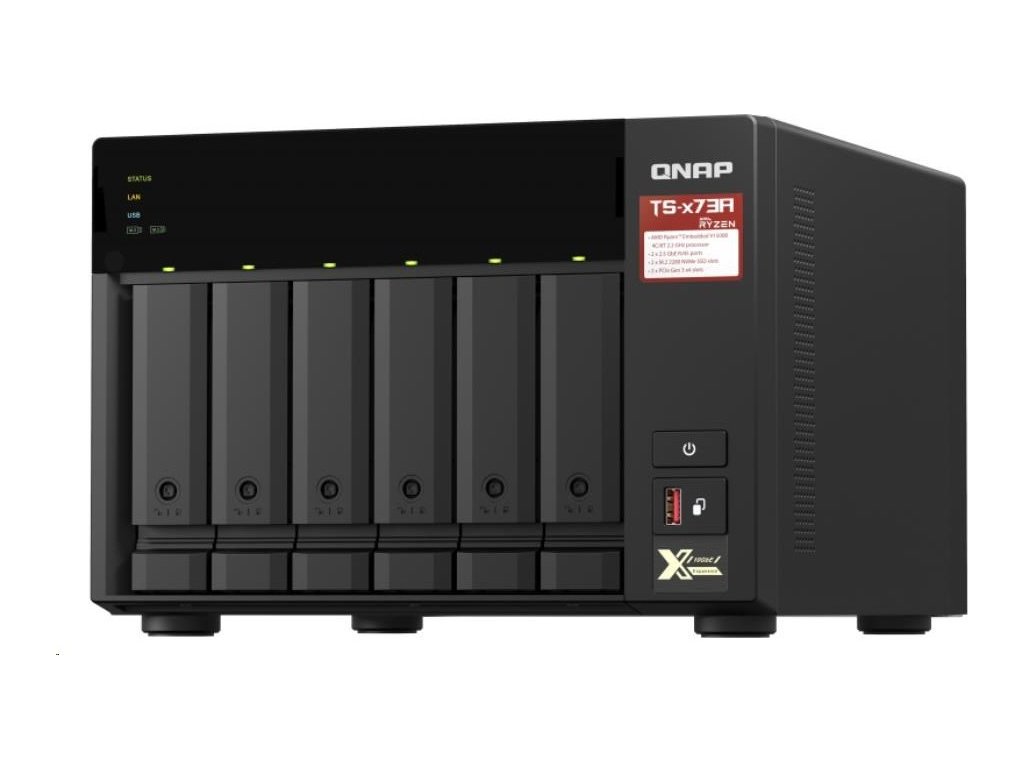 Disponuje štvorjadrovým procesorom AMD Ryzen™ radu V1000 V1500B, ktorý poskytuje vysoký výkon systému vďaka až štyrom jadrám / 8 vláknam a Turbo Core až 2,2 GHz. Zariadenie TS-673A má dva porty 2,5GbE RJ45 a dva sloty PCIe Gen 3, aby ste mohli flexibilne nasadzovať siete 5GbE/10GbE. Dva sloty M.2 NVMe SSD pre technológiu Qtier a SSD Cache umožňujú neustálu optimalizáciu úložiska. Zariadenie TS-673A podporuje systémy QTS a QuTS hero, čo používateľom umožňuje flexibilne prepínať operačný systém podľa ich požiadaviek.