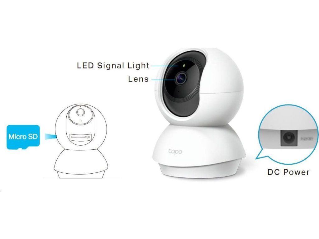 | Obsah balenia | Tapo Pan/Tilt Home Security Wi-Fi napájací adaptér kamery Príručka rýchleho spustenia Montážne skrutky Montážna platňa Základňa kamery |