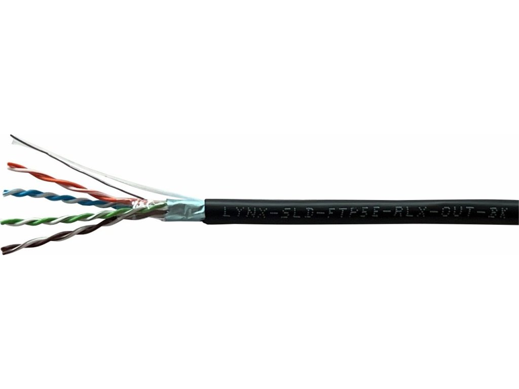 Vonkajší tienený inštalačný kábel LYNX Cat5E FTP PE je vhodný pre trvalé inštalácie vo vnútornom a vonkajšom prostredí budov, budov a iných zariadení s vysokými elektromagnetickými vplyvmi. Kábel je vhodný pre prenosové rýchlosti až 2,5 Gb/s.