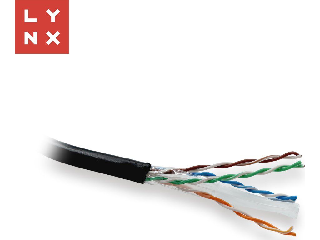 LYNX UTP kabel, Cat6, PE (Fca), celoměděný, venkovní, černý, box 305m