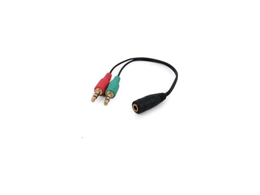 - Káblový rozbočovač jack 3,5 mm (4-pólový) na 2x3,5 mm F/M, 20 cm, audio.