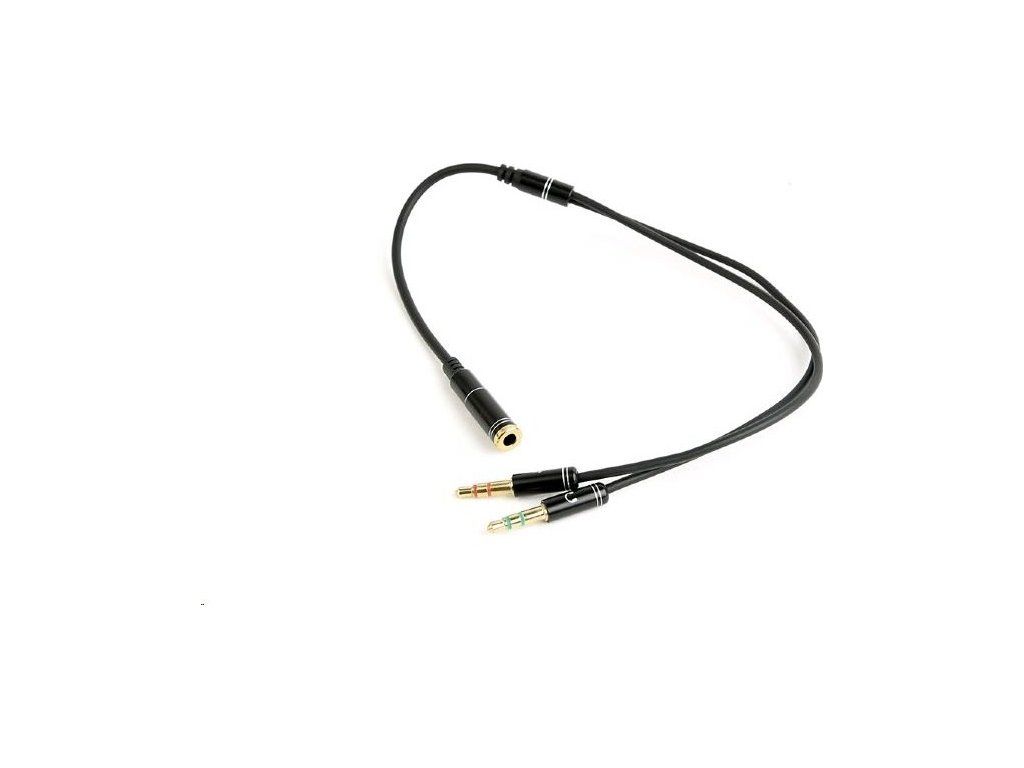 - Káblový rozbočovač jack 3,5 mm (4-pólový) na 2x3,5 mm F/M, 20 cm, audio.
